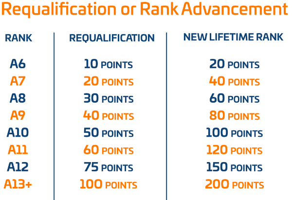 3. Personal Rank Requalification or Advancement from rank A6 (maximum 200 points possible).